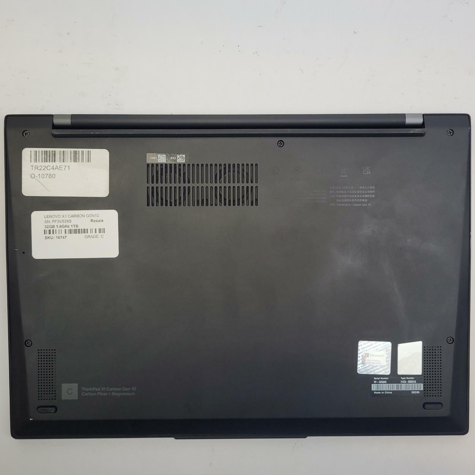 LENOVO X1 CARBON GEN10 Windows 11 Home I7-1280P 32GB RAM 1TB NVME | Grade C