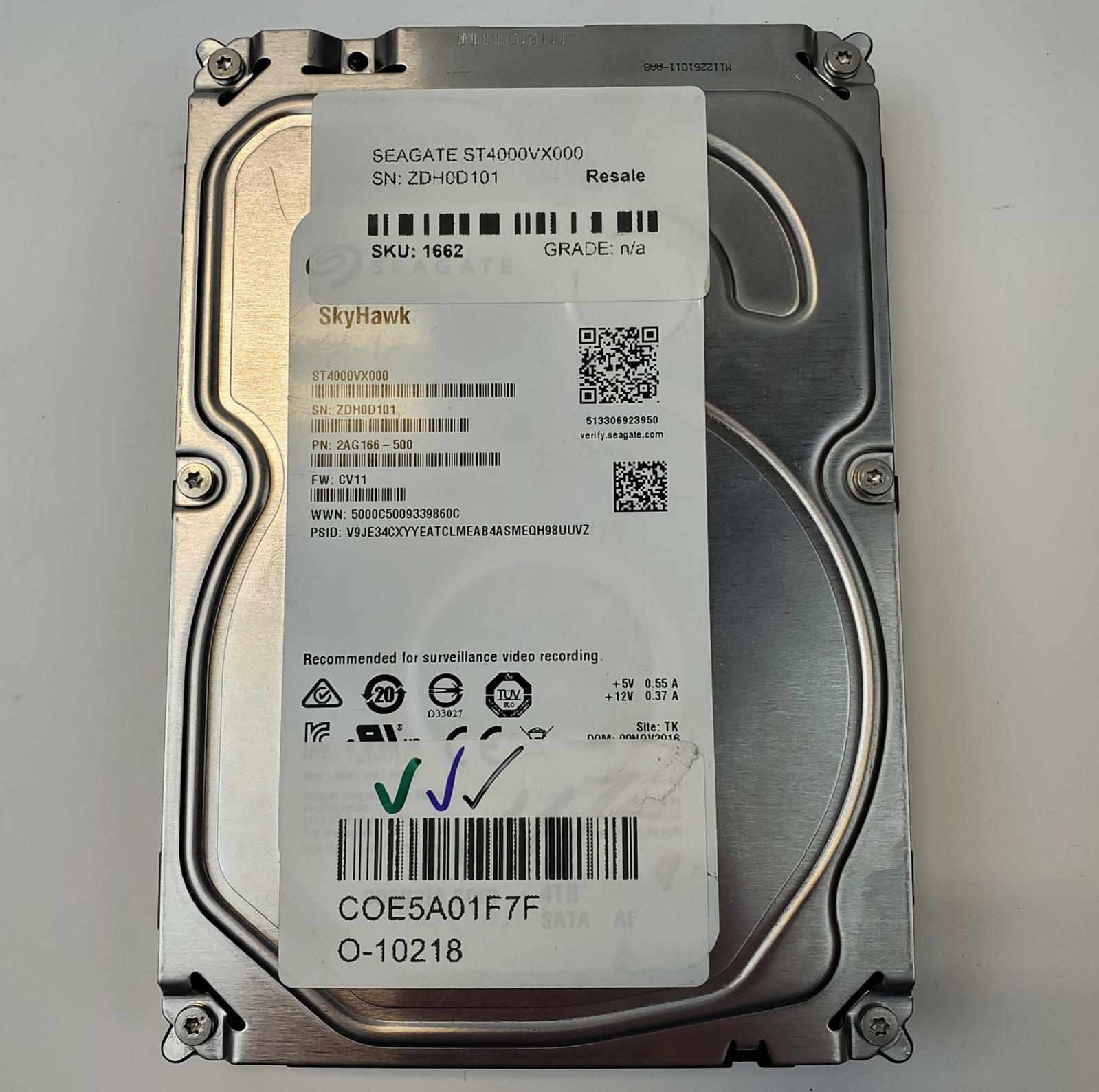 Seagate ST4000VX000 4TB 3.5" SAS Internal HDD | Grade A
