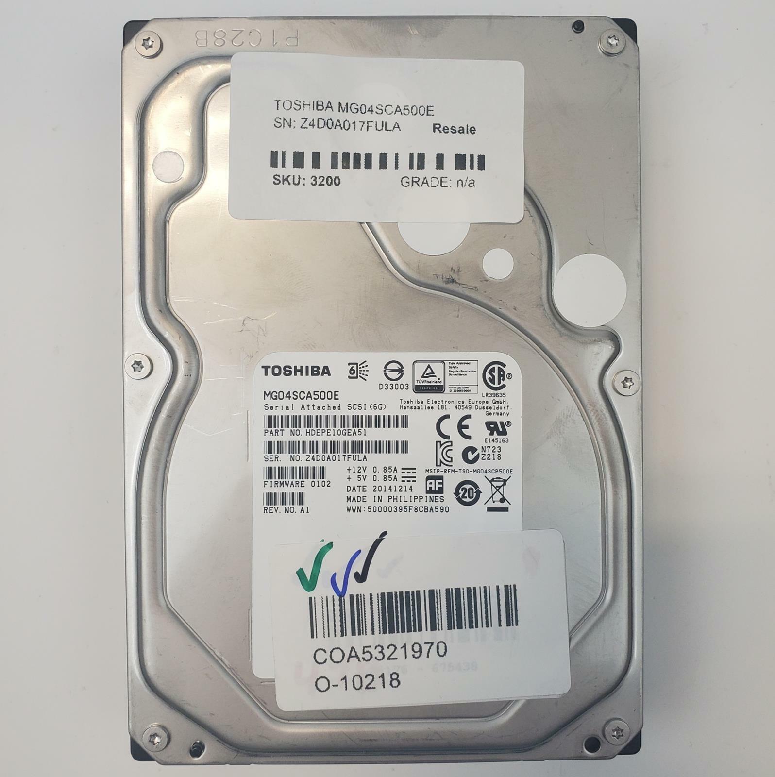Toshiba MG04SCA500E 5TB 3.5" SAS Internal HDD | Grade A